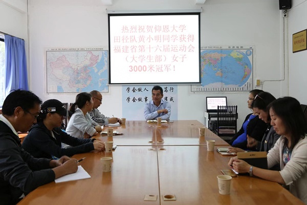 10月31日下午,校党委副书记程如平在beat365中文登录入口会议室看望福建省第十六届运动会(大学生部)女子3000米冠军获得者黄小明并座谈。