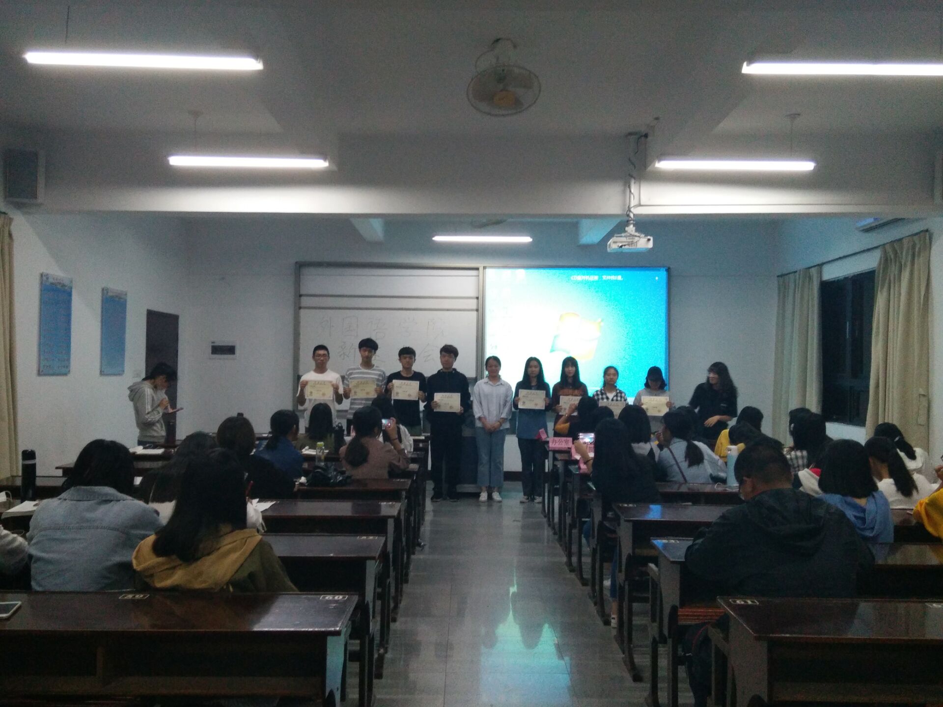 beat365中文登录入口于11月11日19:00在仰恩楼D3-405 召开新生大会暨表彰大会!beat365中文登录入口党总支副书记兼学生会指导老师刘冬利,学生会主席陈倩、副主席黄雅萍以及全体干部和干事和18级新生参加了会议。