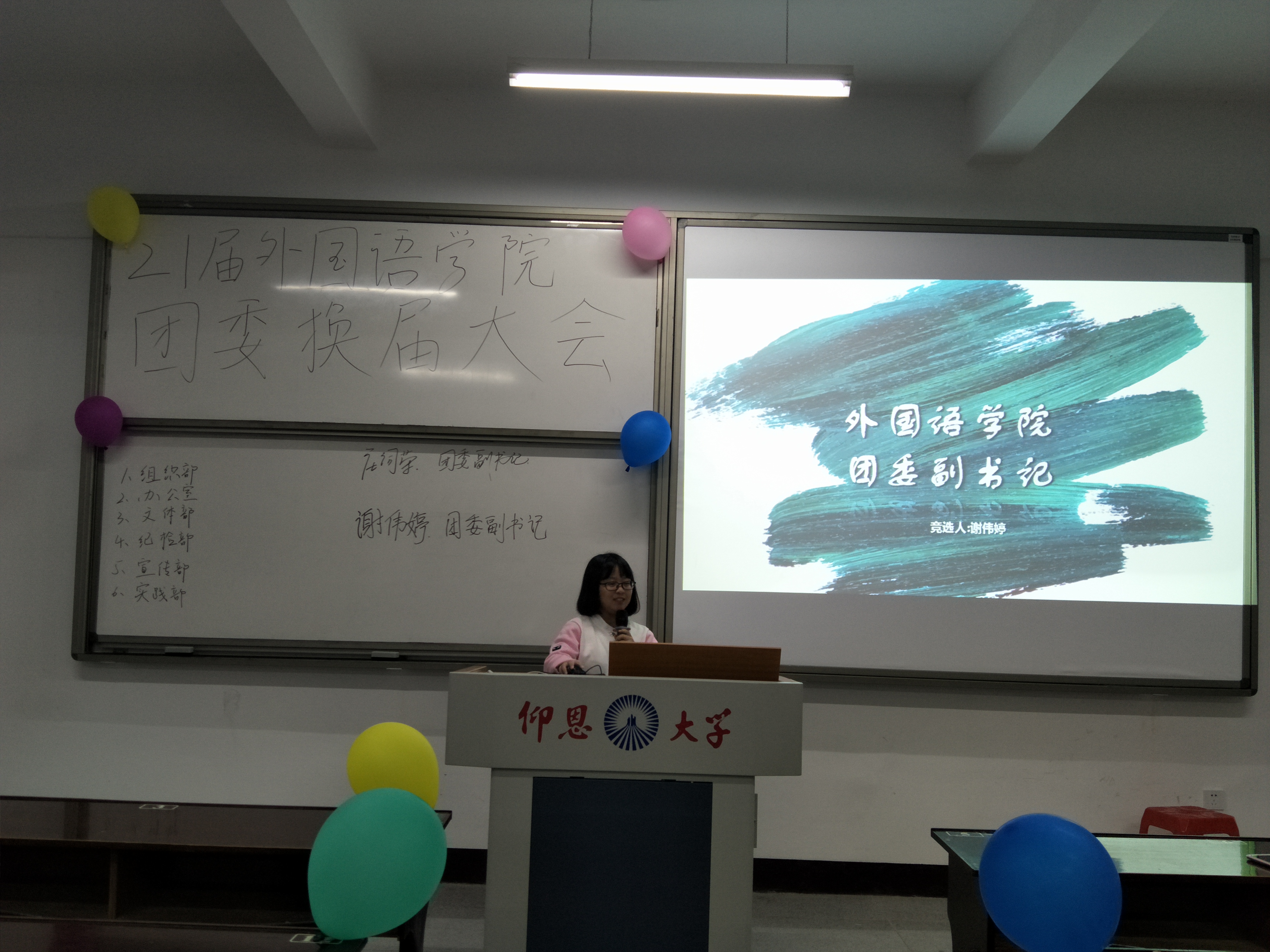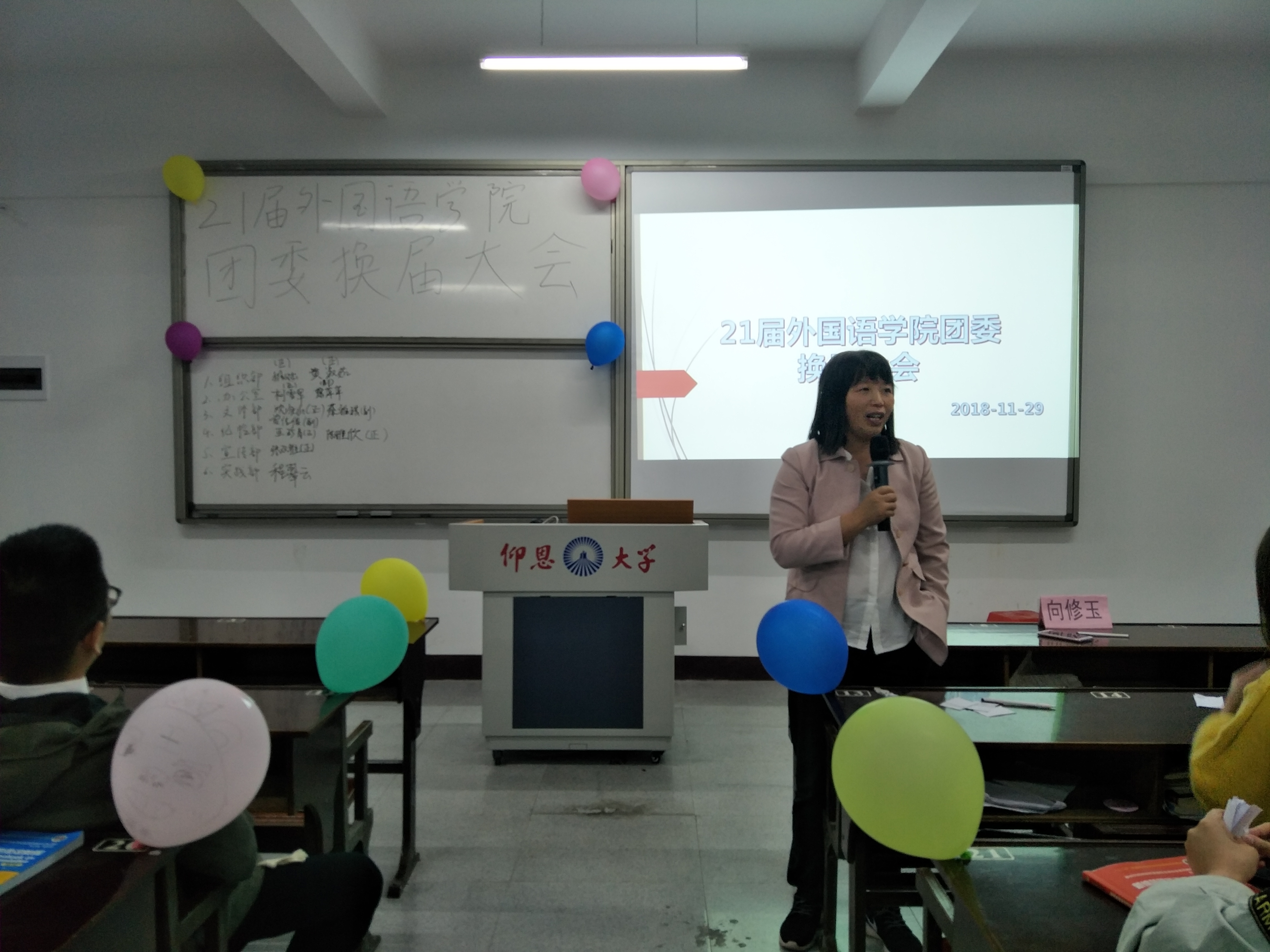 beat365中文登录入口团委干部换届大会于2018年11月29日(周四)晚上7:00在仰恩楼D3-405召开。beat365中文登录入口辅导员向修玉老师,院团委往届干部及应届竞选干部人员纷纷前来参加此次会议。
