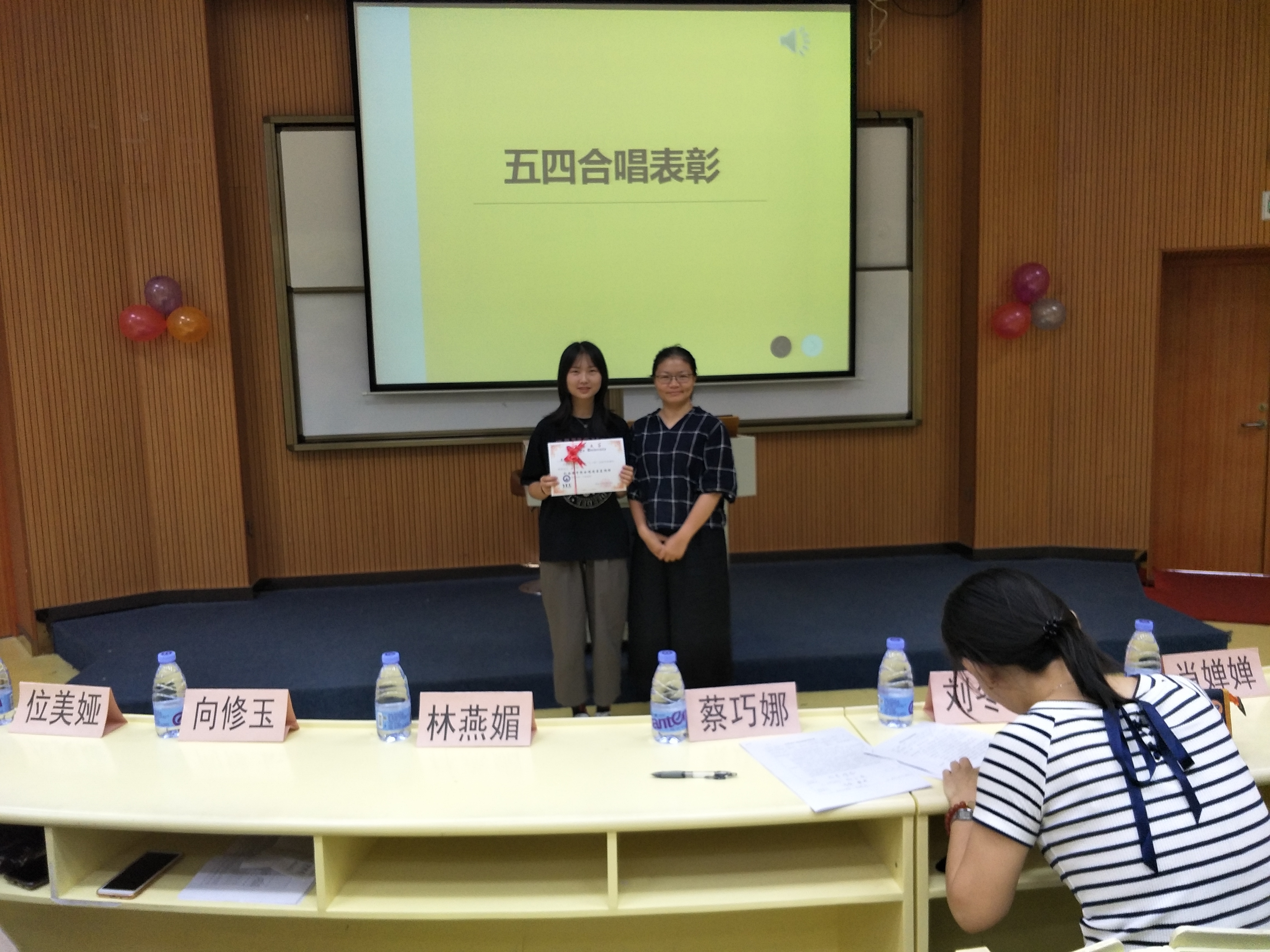 本次专八交流会由通过专八的学姐到场为我们分享学习经验,让大二大三同学们更好的为专八做准备,同时让同学们了解专八。在活动开始前,我们先进行了五四合唱表彰大会,对四月份的五四合唱节进行了总结。接下来由通过专八考试的学姐分享了他们在毕业实习期的工作经验和方法,让我们提前了解到我们未来发展的方向,并且让我们认识到提早设立目标,为之坚持努力的重要性,的重要性。随着时间的流逝,会议也慢慢地接近了尾声,看到学生们的积极高涨的学习热情,老师们显得十分喜悦与欣慰。随后,刘冬利老师向大家作了深刻的总结以及对学生们充满了信心与希望。