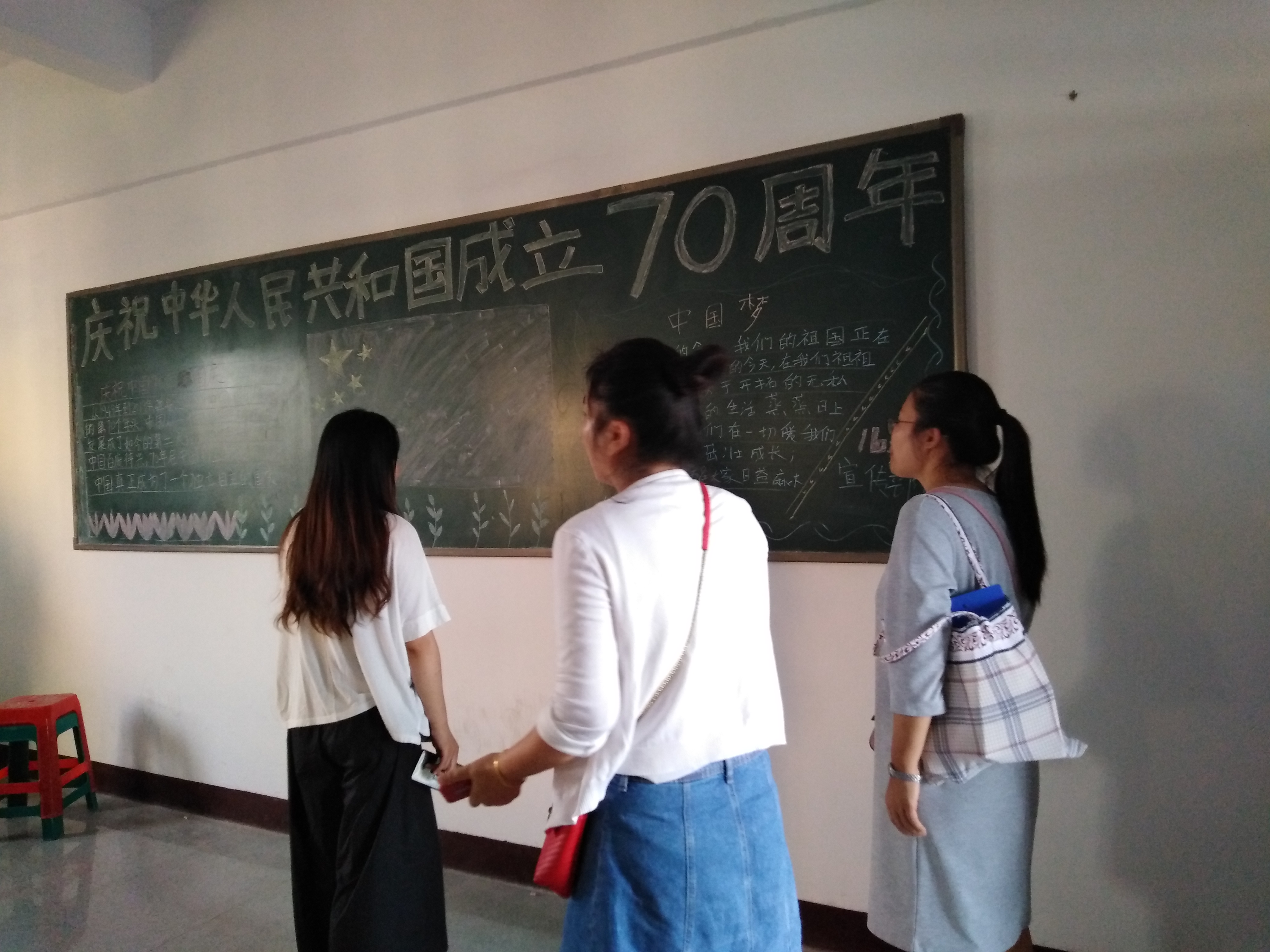 检查黑板报 为了庆祝中华人民共和国成立七十周年,beat365各班级响应学校号召,制作主题板报。学院组织老师通过对同学们黑板报制作的检查和鉴赏,了解学院学子的思想动态,本着以评促改、以评促建的原则,推动黑板报制作水平的提高和加强学生们的爱国主义教育。