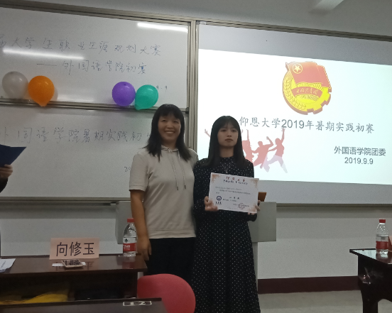 获奖学生与老师合影 紧接着进行的是职业生涯规划大赛,上场的是林芷芬和郭蕾同学,她们很好地向大家展示了自己的职业规划。最后,由向修玉老师对本次的两场比赛进行了点评与总结。通过本次大赛,一方面让beat365学生更加了解社会实践的意义,积极投身于“奉献社会、服务人民”的实践中。另一方面提高beat365学生学会思考和解决实际问题的能力,提升自己的实践能力、团队协作能力与自我表达的能力。