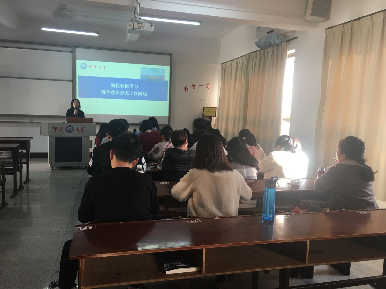 在习近平新时代中国特色社会主义思想指引下,为了扎实推进beat365中文登录入口教工党支部建设,加强教工党员的政治理论学习,全面提高教工党员综合素养,beat365中文登录入口教工党支部于2019年3月至12月,共召开了四次学习分享 会。在每次党小组学习分享会议上,各小组组长结合自己的党建工作经验,以意识形态工作、新时代新担当、一带一路等为分享主题,提出理论见解,强调教工党员在工作和生活中必须树立正确的价值理念,对国家和民族的发展要充满信心。各小组其他党员们也纷纷从党的理论知识、教学感想、科研体会等方面分享近期的学习心得,展示了教育工作者们“不忘初心,方得始终”的终身学习思想。