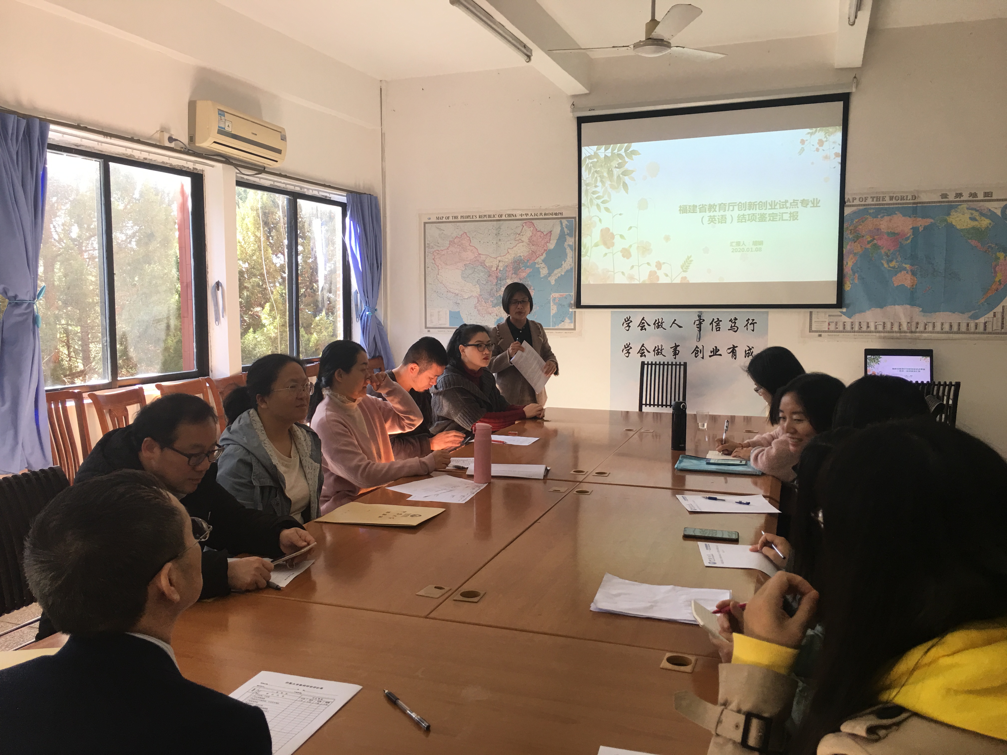 2019年1月8日,根据《福建省教育厅关于开展高等学校创新创业教育改革项目结项工作的通知》(闽教办高〔2018〕7 号)文件精神和学校科研部的工作部署,beat365在仰光楼203举行福建省教育厅创新创业试点专业(英语)结项鉴定会。