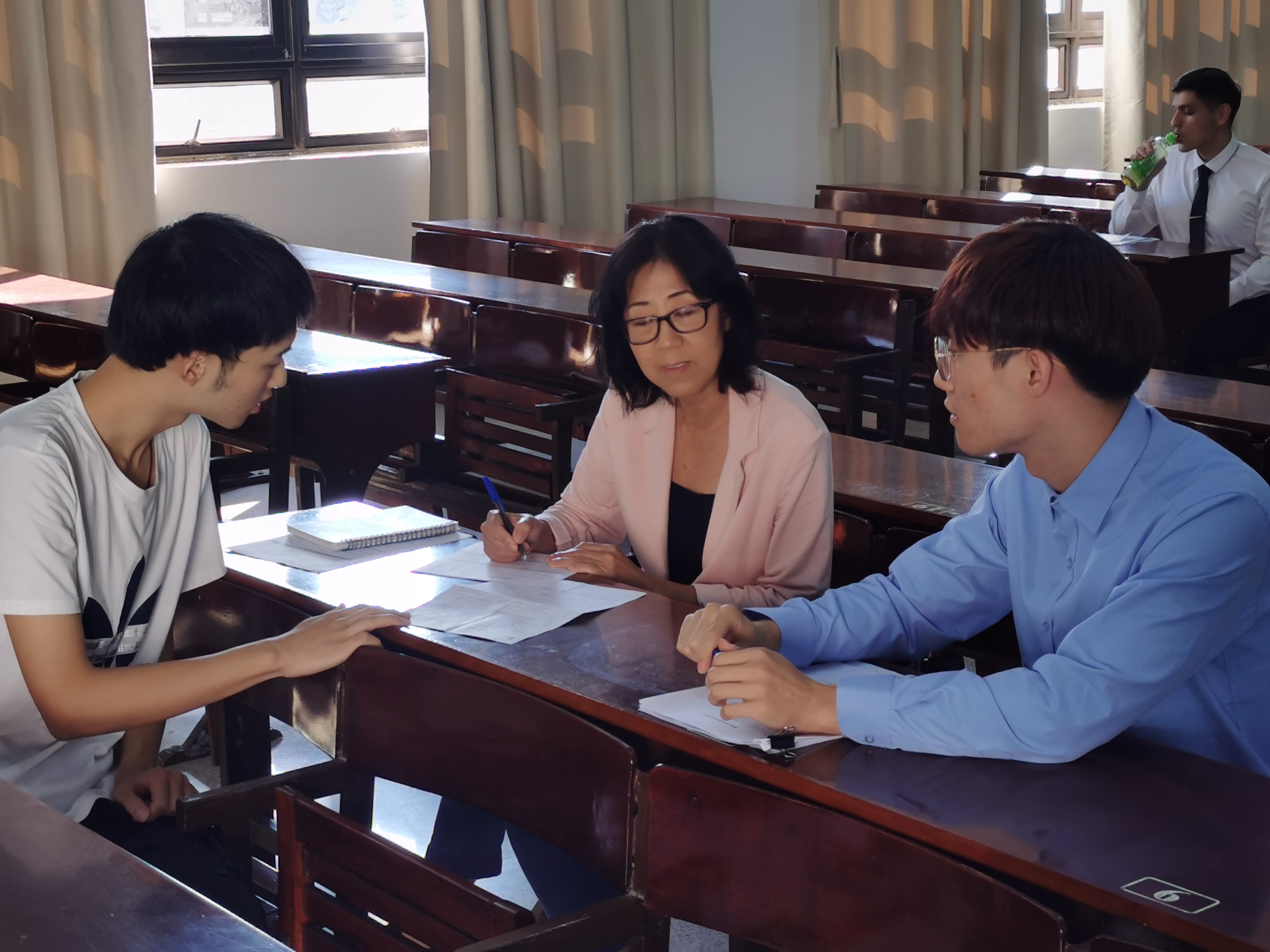 宣讲会结束后,2017级和2018级学生在第三教学区仰恩教学楼D4-401,D4-403,和D4-405进行现场面试。