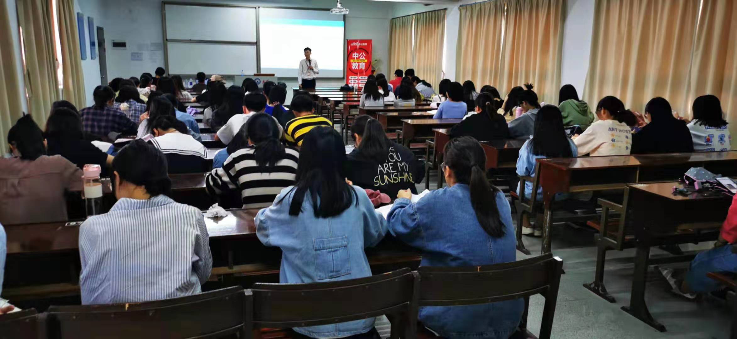 2020年11月18日下午,beat365中文登录入口在仰恩楼D4-405举办了中公教育考研考公专场宣讲会。beat365中文登录入口2017级和2018级学生参加了讲座。
