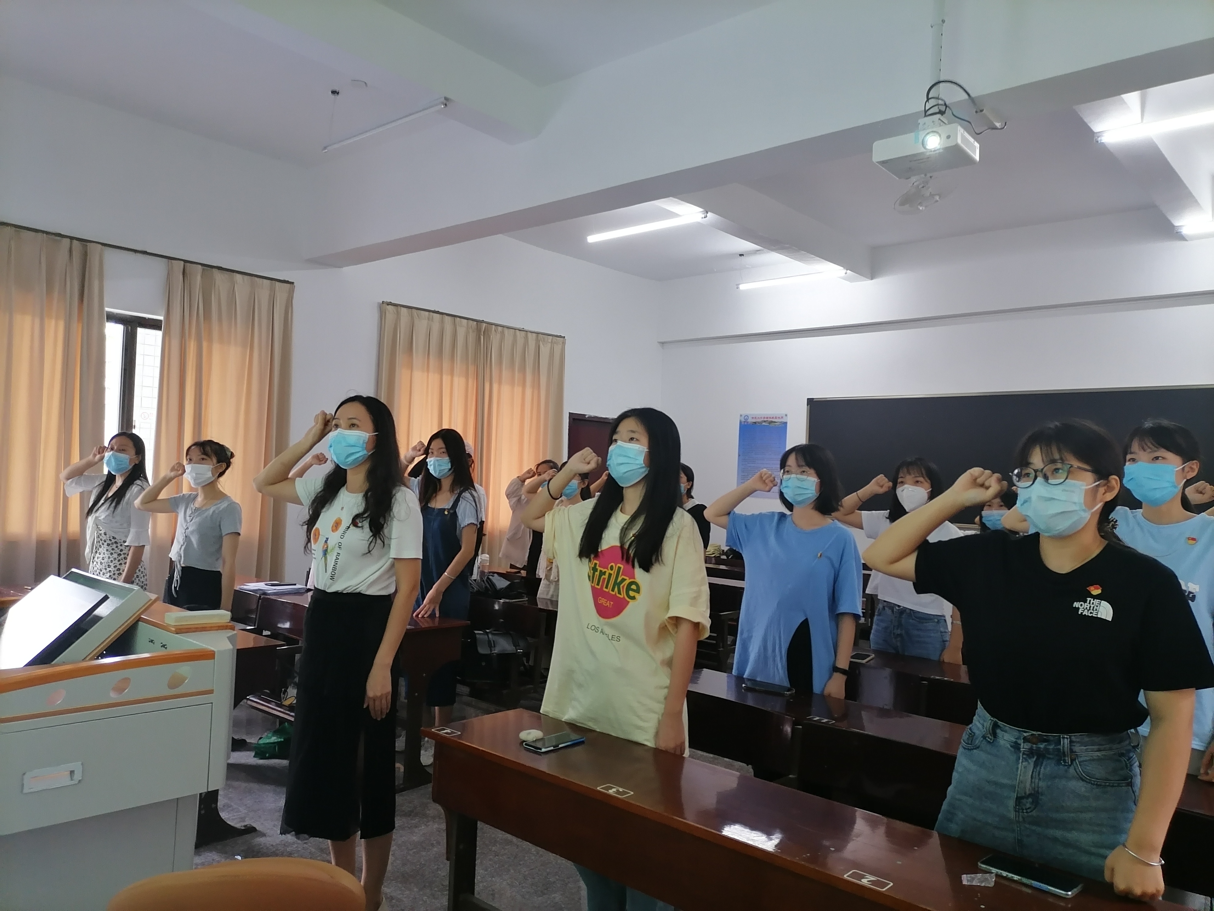 重温入党誓词 学习孙丽美同志先进事迹之前,许淑琴带领全体党员重温入党誓词,坚定入党初心,铭记“坚守初心,践行宗旨”,倡导全体学生党员在疫情防控中发挥先锋模范作用。