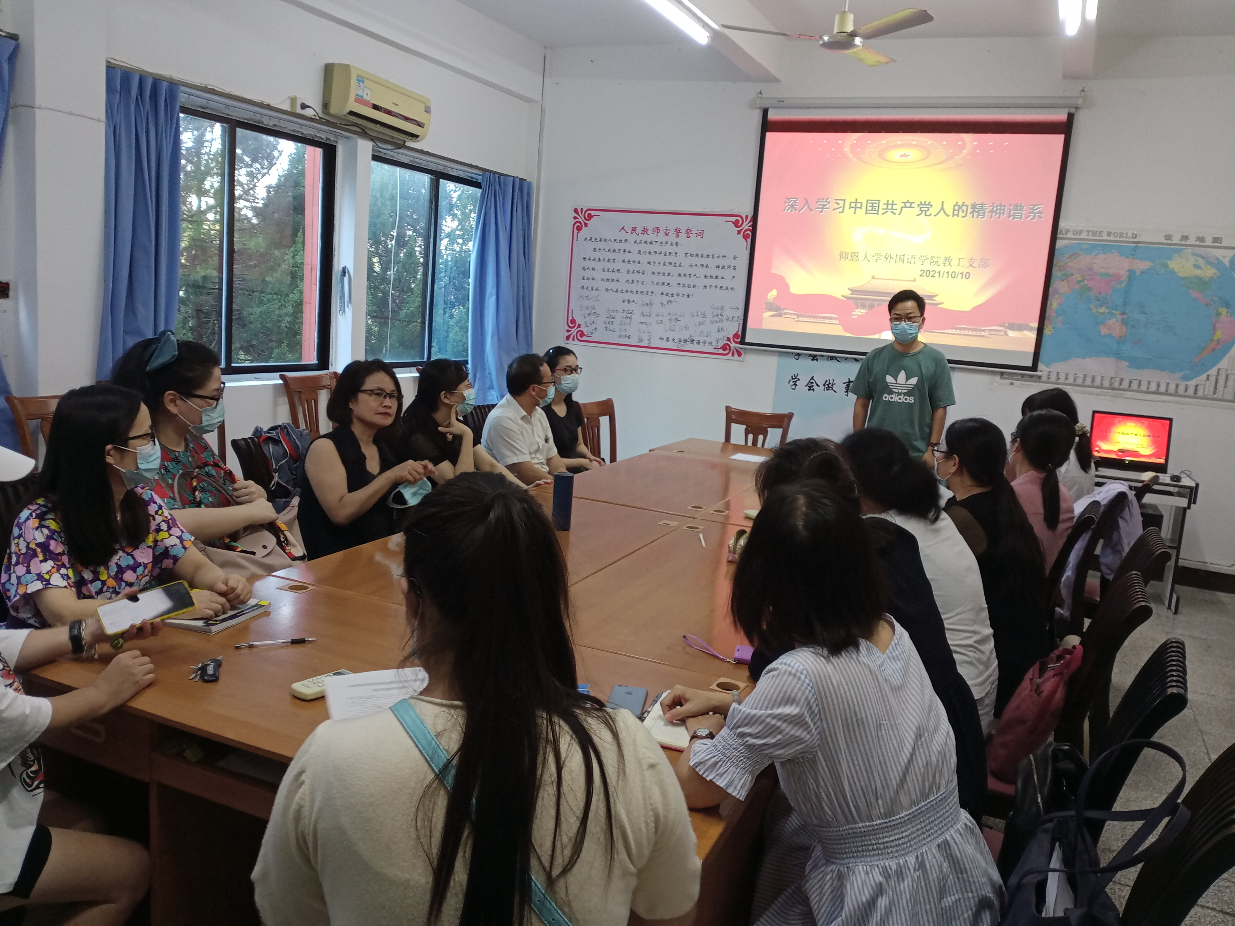 10月10日beat365中文登录入口教工党支部在仰光楼学院办公室开展全体党员大会,深入学习中国共产党人的精神谱系。会议由教工支部书记蔡维主持,全体教师党员参加。