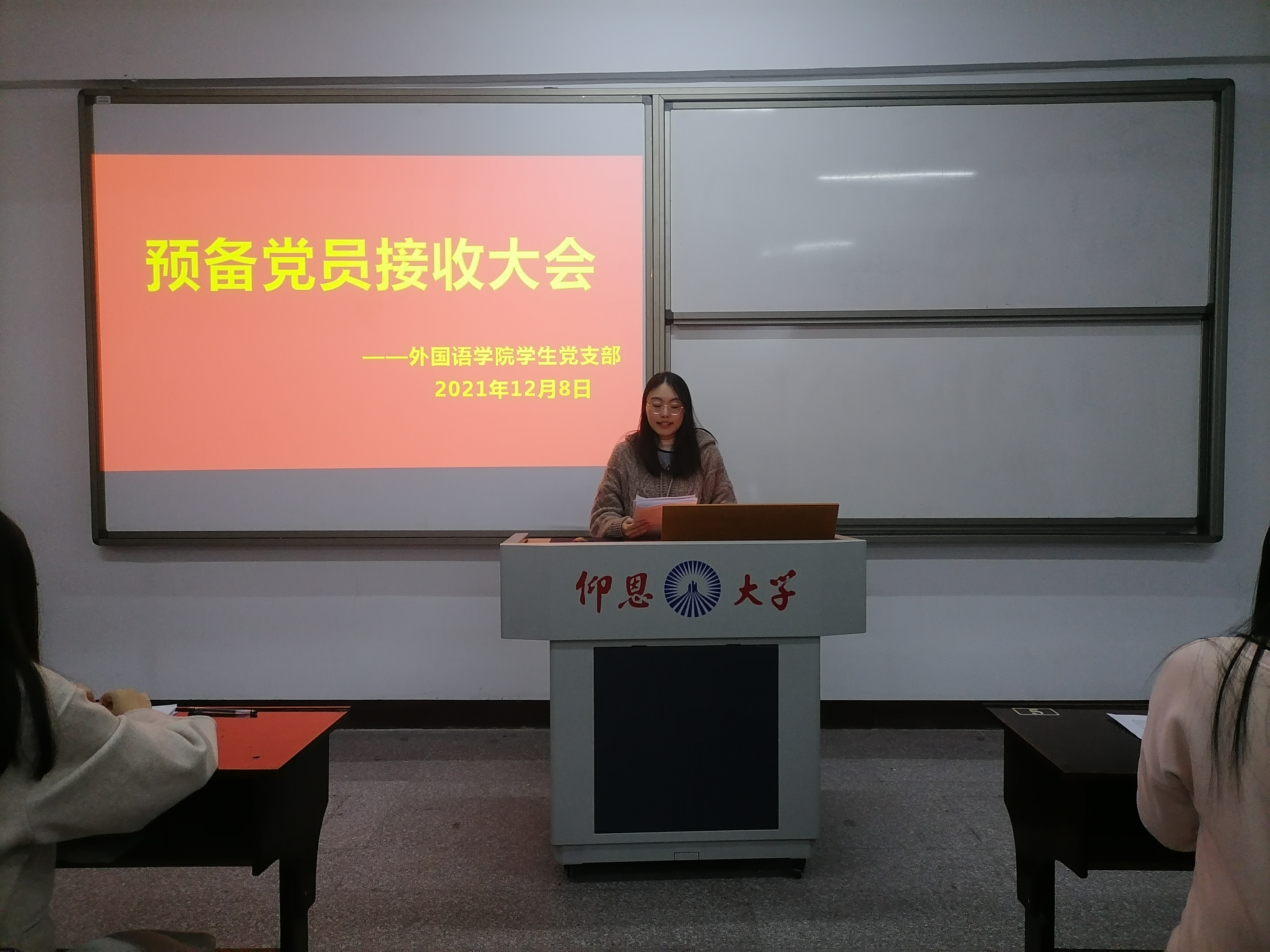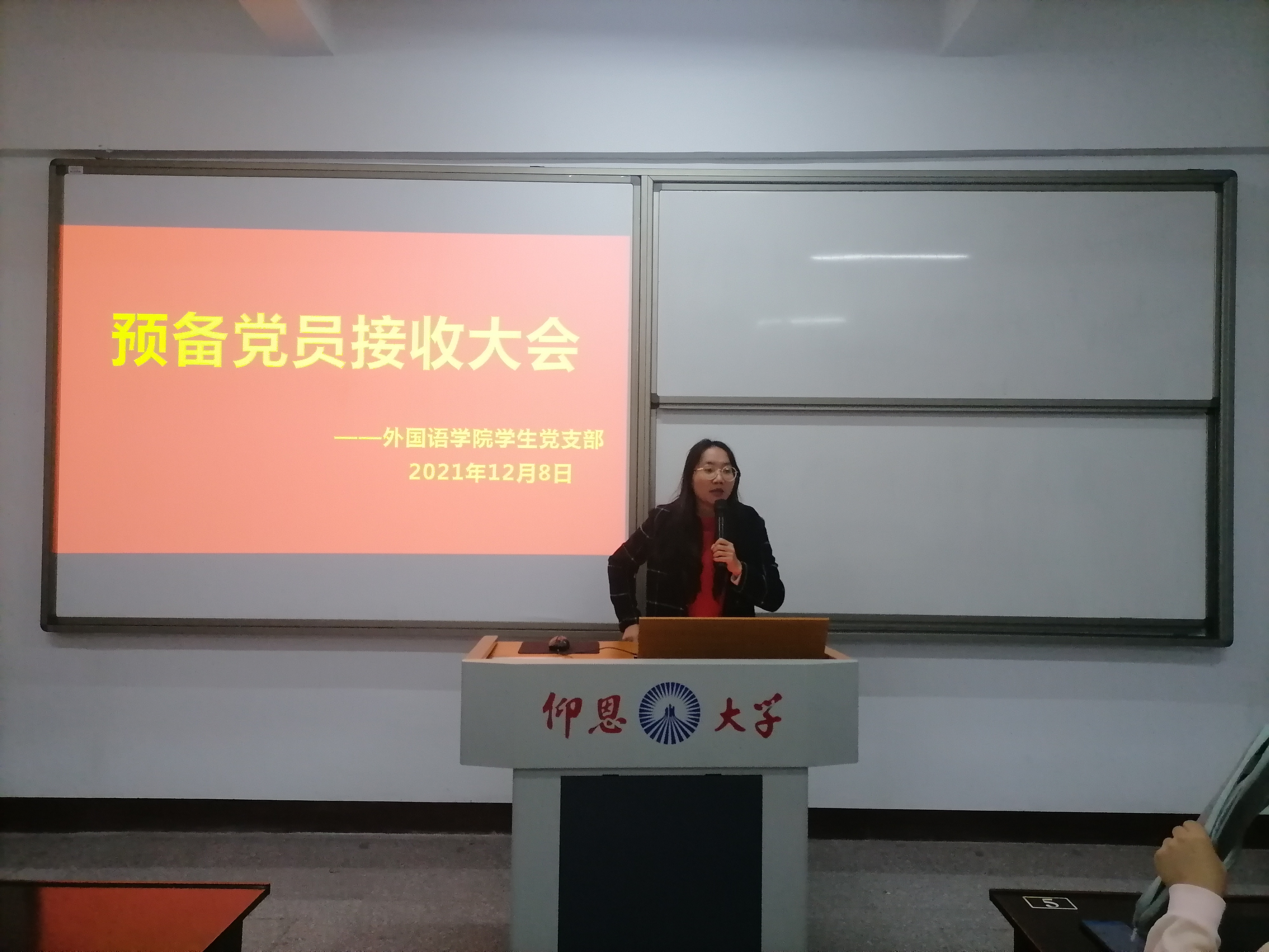 2021年12月8日beat365中文登录入口学生党支部在普照教学楼309教室召开接收预备党员大会。本次会议由学生党支部书记许淑琴主持,支部全体师生党员和积极分子参加本次大会。