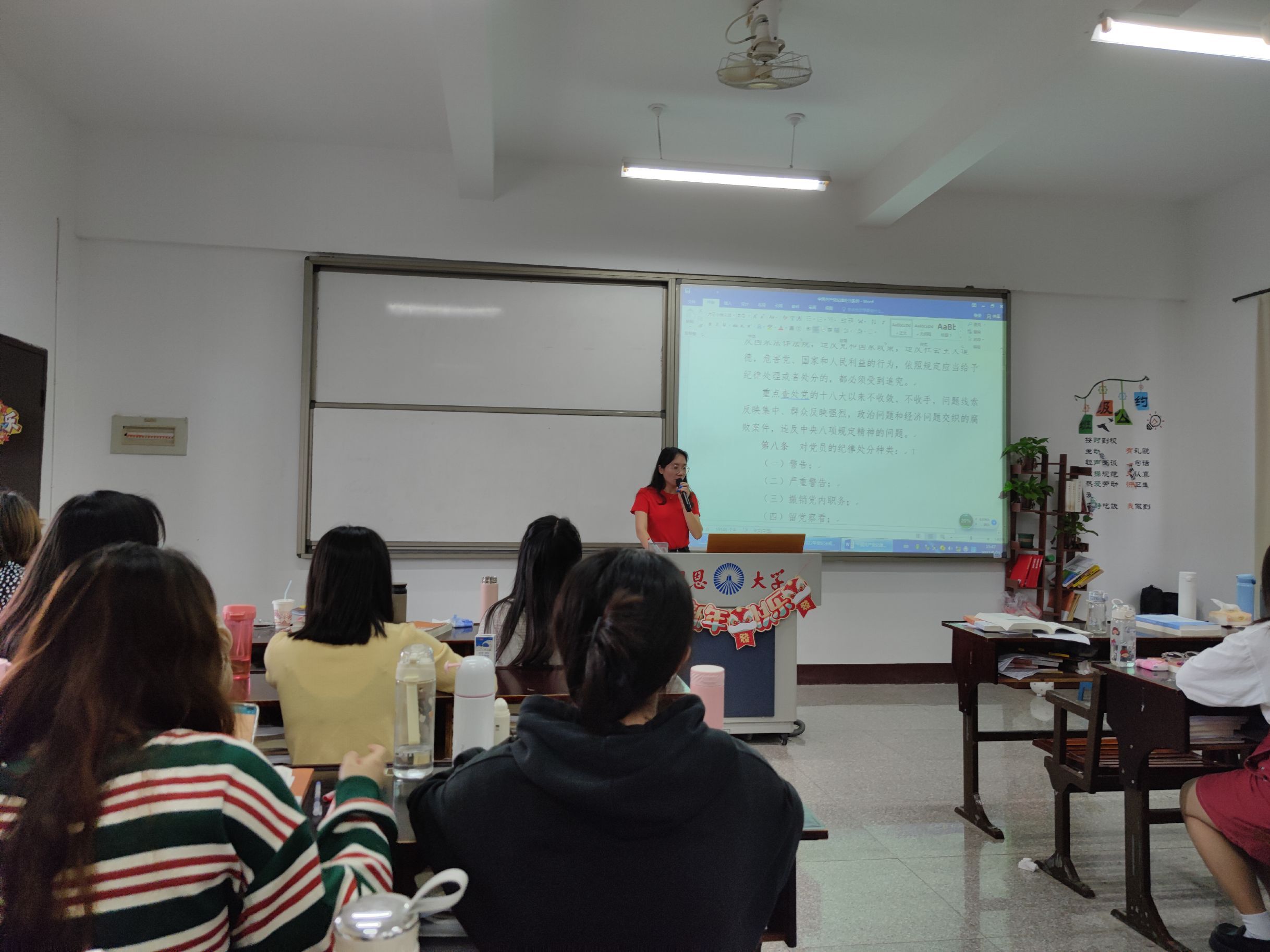 许淑琴书记围绕“学习党纪法规,增强自律意识”主题,带领学生党员同志对党纪党规进行学习讨论,进一步强化了学生党员对自我的身份认识,提升讲规矩守纪律的自觉性,夯实了政治理论基础和思想基础。(图/文 beat365中文登录入口学生党支部)