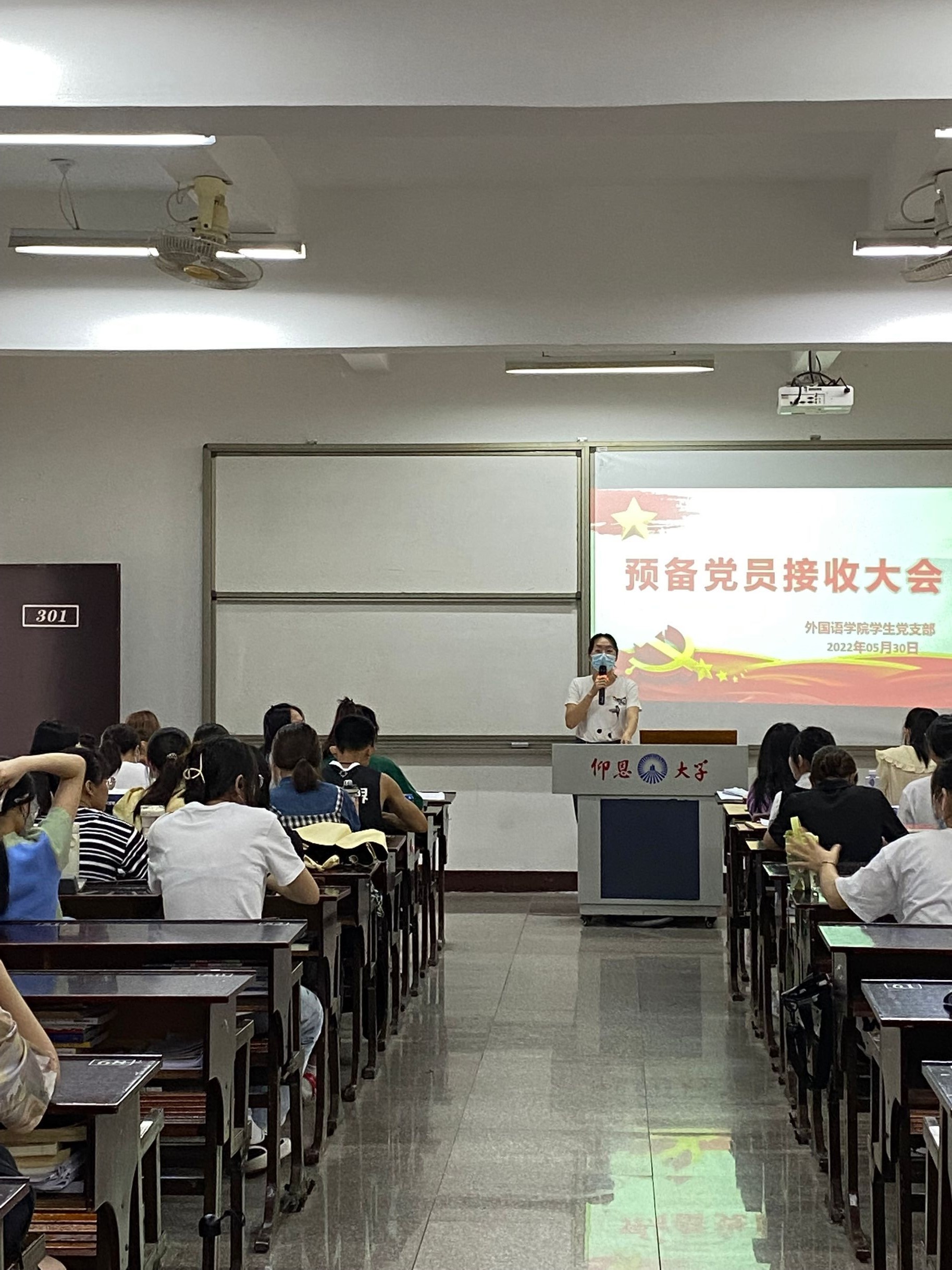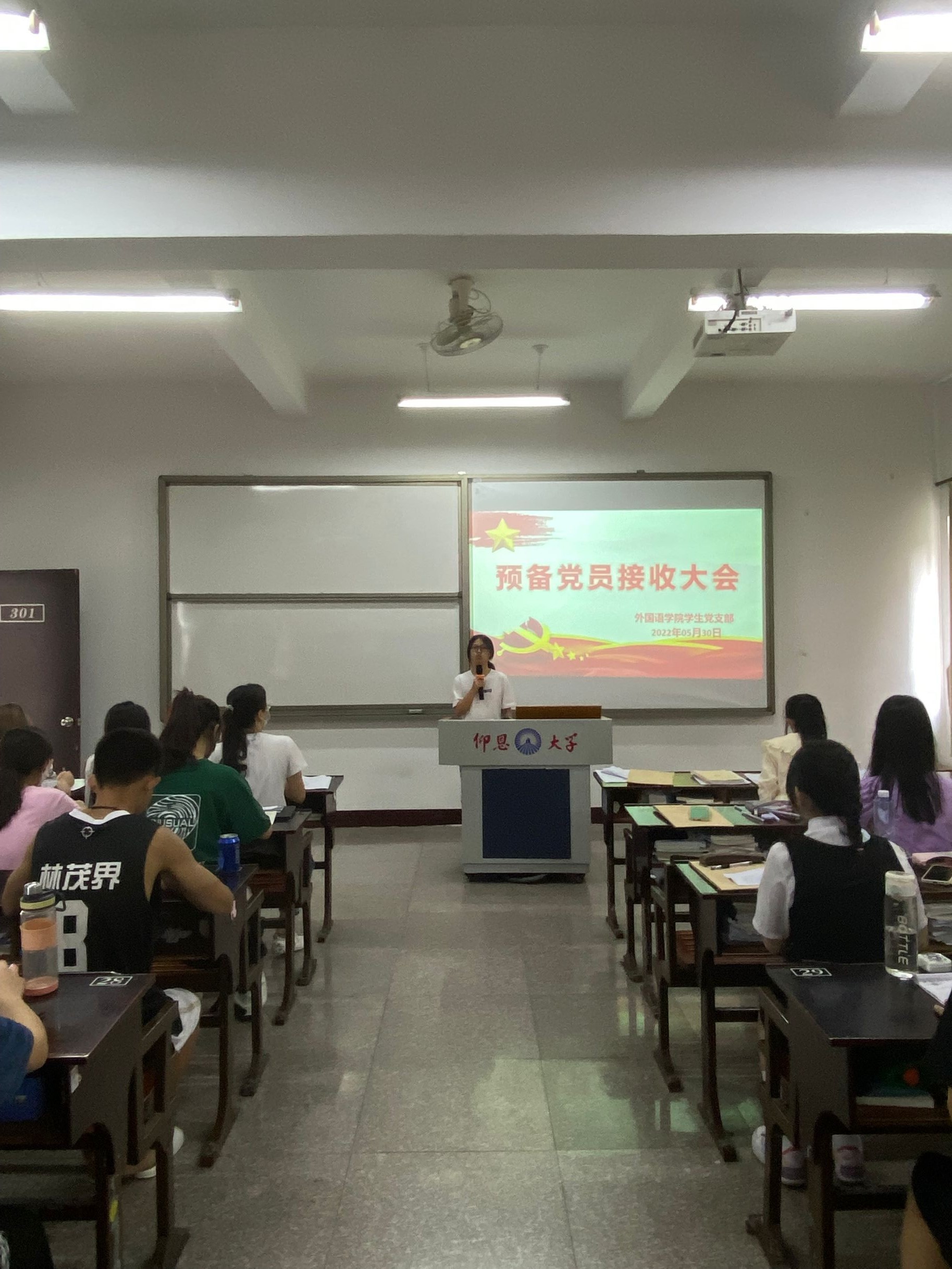 2022年5月30日beat365中文登录入口学生党支部在普照教学楼301教室召开预备党员接收会议。本次会议由许淑琴书记主持,向修玉同志、位美娅同志以及全体支部成员出席参加。