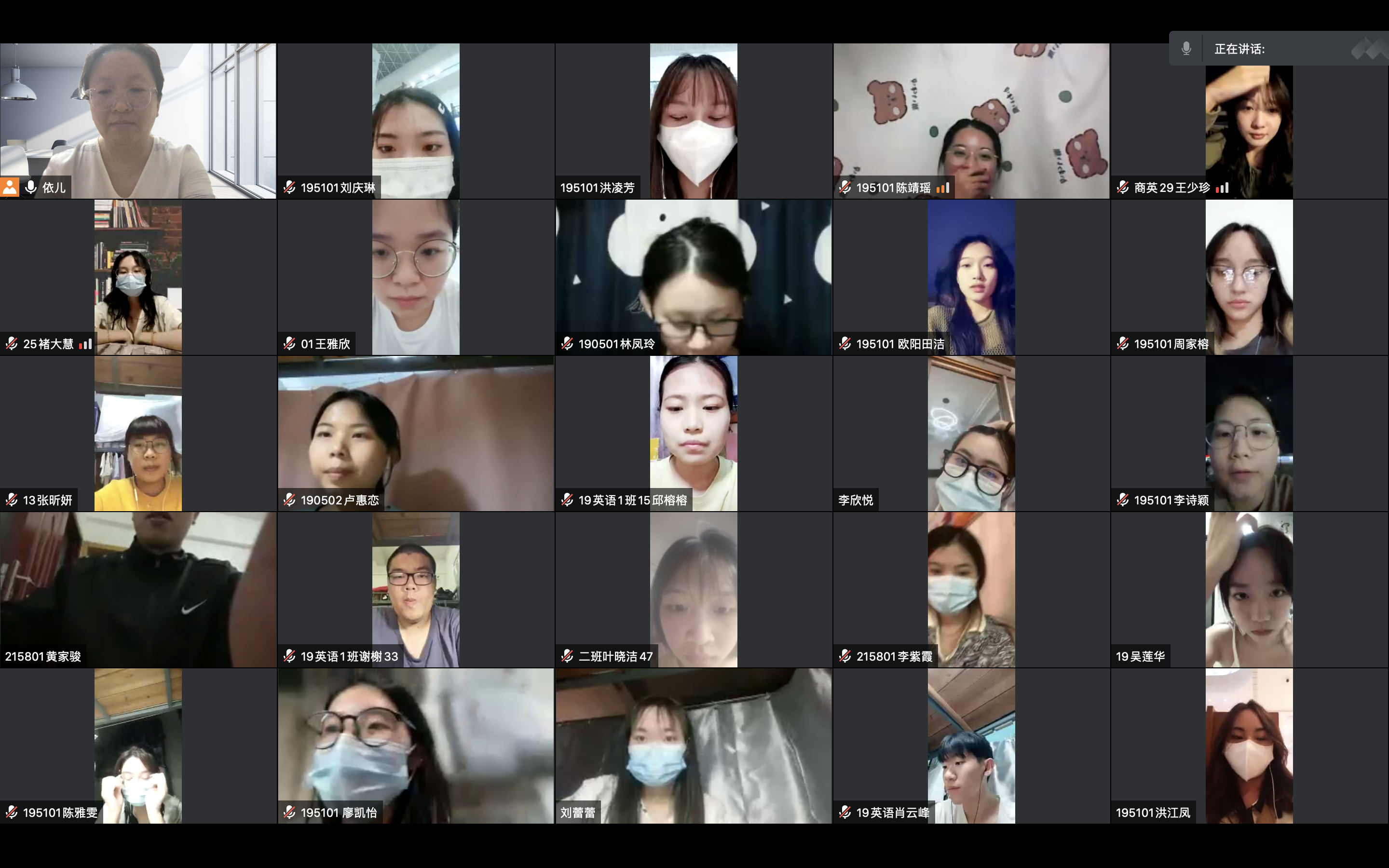 线上会议 接着,肖老师就遴选导师和英语系论文工作时间安排做了详细说明,并对文献综述、开题报告、任务书以及论文的撰写规范方面等细节一一进行了讲解;同时,肖老师强调,毕业论文的撰写须遵守学术道德规范,禁止抄袭、伪造数据、请人代写等学术不端行为,希望同学们认真对待毕业论文,给自己的大学生涯画上圆满的句号。最后,老师们在答疑环节耐心细致地回答了同学们针对论文所提出的问题。