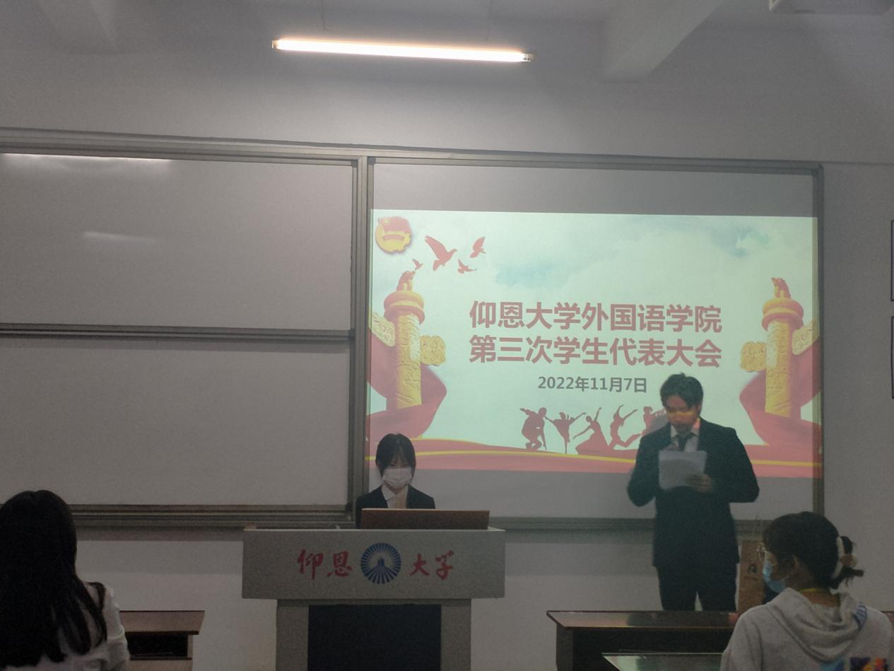 2022年11月7日晚,beat365中文登录入口举行第三次学生代表大会,本次大会主要是选举新一届学生会主席以及主席团成员。大会由前任主席叶懋绅主持。