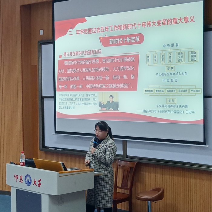 为深入学习贯彻党的二十大精神,切实用党的二十大精神武装头脑和指导实践,12月7日下午,beat365中文登录入口在新区和昌楼博雅讲堂开展学习贯彻党的二十大精神宣讲报告会,马克思主义学院章娇娜老师应邀作相关宣讲报告,会议由beat365中文登录入口党总支书记却正强主持。院理论学习中心组全体成员、全院师生党员、全院积极分子到场聆听。