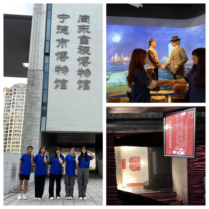 实践队员们首先参观了宁德市博物馆,了解了当地的历史文化、民俗风情和闽东畲族文物。博物馆主要分为宁德历史文物展馆和闽东畲族文物展馆两部分。在讲解员的带领下,实践队员们在宁德历史文物展馆内,对宁德文化的古墓葬、古遗址、石刻碑记、近现代重要史迹及代表性建筑这五大类有了简单的认识,感受到宁德文化的悠久历史和灿烂辉煌;在闽东畲族文物展馆内,则从宗教祭祀、服装首饰、生产用具、生活用具和工艺品等方面了解了畲族的婚礼、不同地区不同样式的传统服饰以及生产生活习俗等内容,充分领略了畲族历史和传统文化。