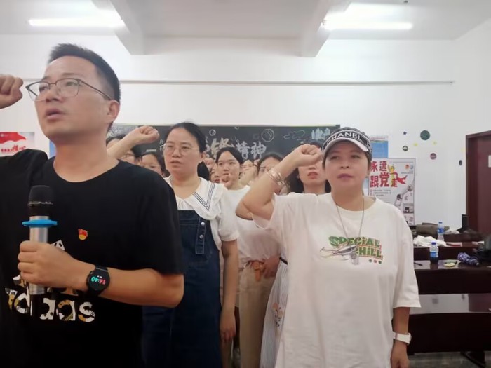 会上,蔡维同志首先领学习近平生态文明理论,深刻诠释了习近平生态文明理论的内涵,强调教师对自己要有正确的定位,要把服务学生摆在首位;尔后,党员同志对照党章,认真开展批评与自我批评,检视不足,明确努力方向;最后,全体党员重温入党誓词,坚持不忘初心、牢记使命,勇于担当,争做合格党员。(图/文:连毅卿)