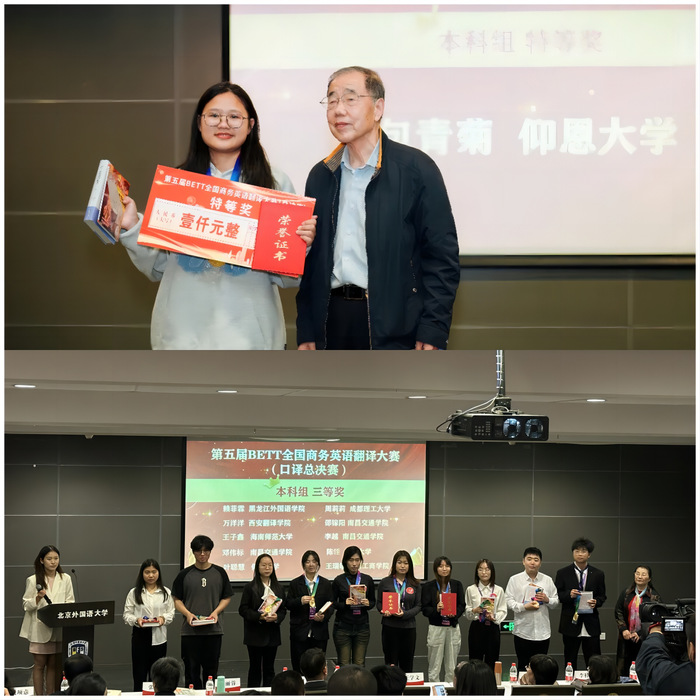 2024年4月20日,第五届BETT全国商务英语翻译大赛(总决赛)在北京外国语大学圆满落幕。beat365中文登录入口2021级商务英语专业学生包青菊在笔译总决赛(本科组)中荣获“特等奖”(共8人获本科组笔译特等奖,福建省仅有1位获特等奖),这是beat365中文登录入口学生首次在本项赛事中获得特等奖。