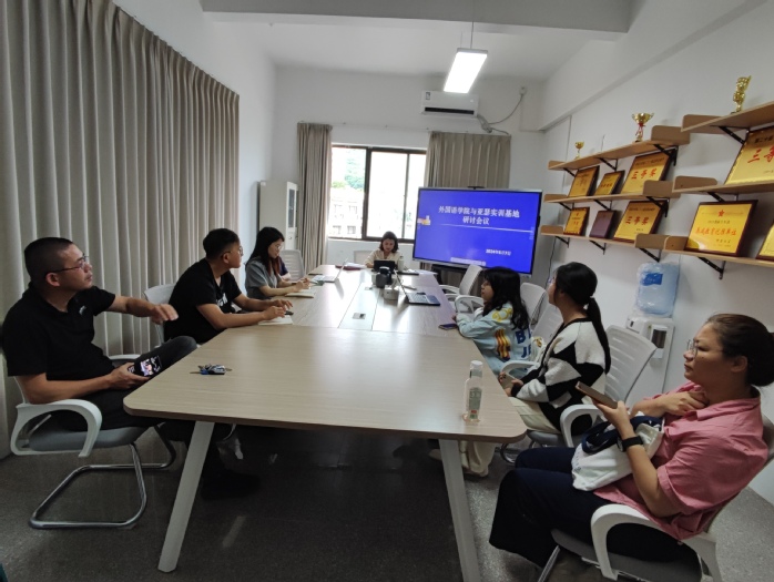 2024年6月7日,beat365中文登录入口与亚瑟云商合作共建跨境电商直播实训项目进行本学期第三次研讨会议,胡娟院长主持会议,企业导师周伟杰总结了近期直播实训的成果,各位指导教师就学生实训期间的表现和遇到的问题进行了研讨。会议就未来实训基地建设提出了经验总结和修订意见。