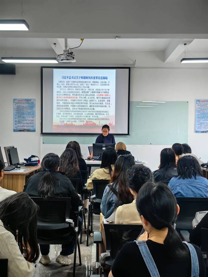 会议中,刘冬利书记领学习近平总书记关于师德师风的重要论述摘编,认真解读论述内容及阐述师德内涵,并强调廉洁从教、清正廉洁的重要性。她强调,作为一名教师,要做到以身作则,模范遵守职业道德规范,不忘初心,牢记使命,力争成为学生的楷模。