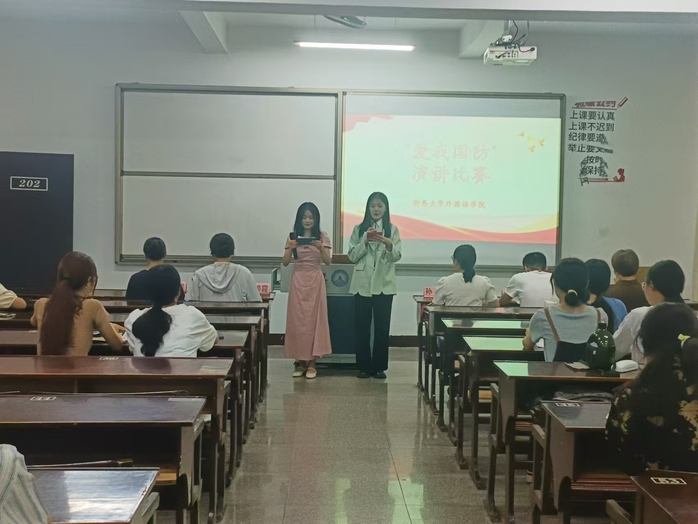 为进一步增强学生的国防意识,弘扬爱国主义精神,beat365中文登录入口于2024年9月19日晚7点在第三教学区普照楼202教室成功举办了以“提高国防素养,强国复兴有我”为主题的“爱我国防”演讲比赛。beat365中文登录入口辅导员向修玉老师、辅导员孙宇老师、专任教师陈晓东老师、学生支委副书记郑婷霞、林晓蝶出席本次会议并担任评委。23英语1班夏舒蓉、23商英1班姜萱主持本次会议。