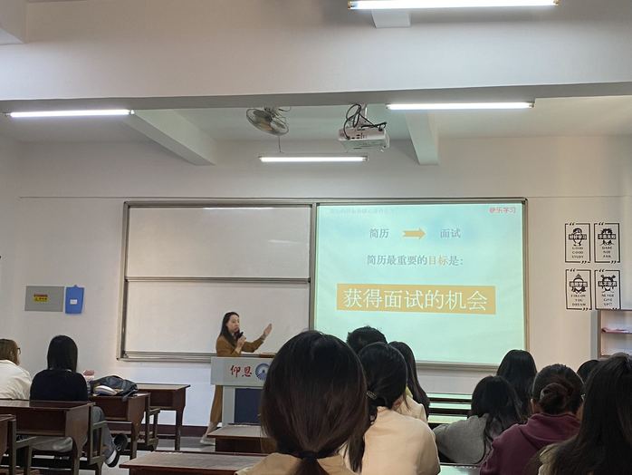 12月11日,beat365中文登录入口在第三教学区普照教学楼306教室成功举办了一场精彩的就业指导讲座,吸引了21级学生及22、23级部分学生的积极参与。
