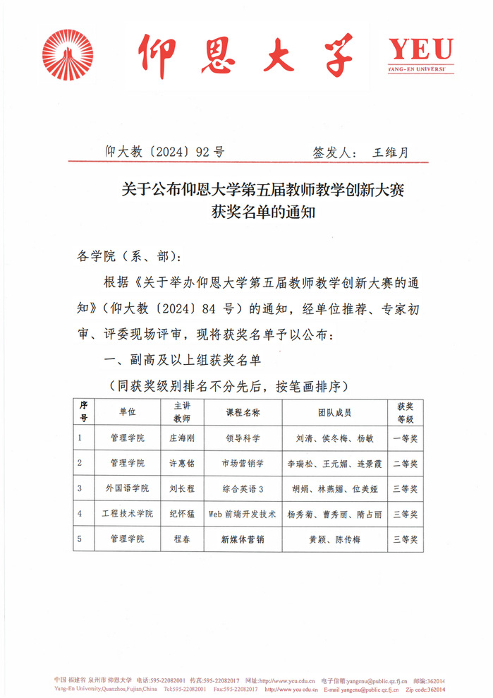 beat365中文登录入口的两位教师及其团队在本次大赛中的优异表现,不仅展示了他们在教学创新方面的卓越能力,也为学院的教育教学改革注入了新的活力。相信在他们的带动下,beat365中文登录入口的教学水平将迎来新的提升,为培养更多高素质人才贡献力量。(编辑/陈夜羽 审核/刘冬利)