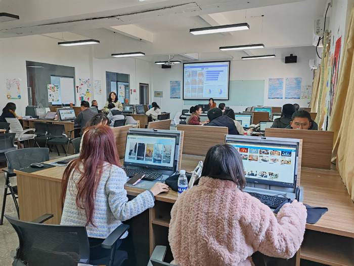 中语智汇科技(厦门)有限公司是一家智能互联网教育企业,凭借智慧教育云平台,致力于推动信息技术与新文科、新商科教育的深度创新融合。在本次培训会议上,中语智汇工程师曾思宁详细介绍了综合技能竞赛平台的使用方法,包括如何建班和基本操作等内容。同时,还着重阐述了该平台的主要优点和特色。这些内容引起了参会教师们的浓厚兴趣,他们认真聆听、积极提问,与工程师进行了深入的交流和探讨。