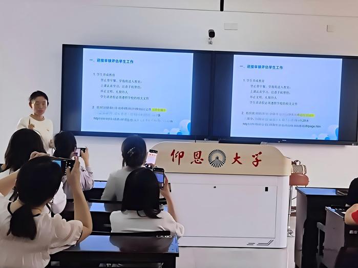 随后,会议围绕新学期重点工作展开详细部署。在思想引领方面,学院将通过主题班会、年级会等形式,深入开展理想信念教育,引导学生深刻认识审核评估的重要意义,增强主人翁意识,主动参与到迎评工作中;学风建设方面,学院计划进一步完善学风监督机制,加强课堂考勤与晚自习管理,同时将通过组建学习帮扶小组、开展专业学习经验交流会、各项学科竞赛等举措,营造比学赶超的良好氛围,助力学生提升专业素养;心理健康与就业指导工作则明确要建立“一生一档”跟踪机制,联合专业力量为学生提供个性化支持;在养成教育上,会议强调要从细节入手,规范学生日常行为。辅导员、班主任将定期深入学生宿舍,检查卫生与安全状况,培养学生良好的生活习惯。