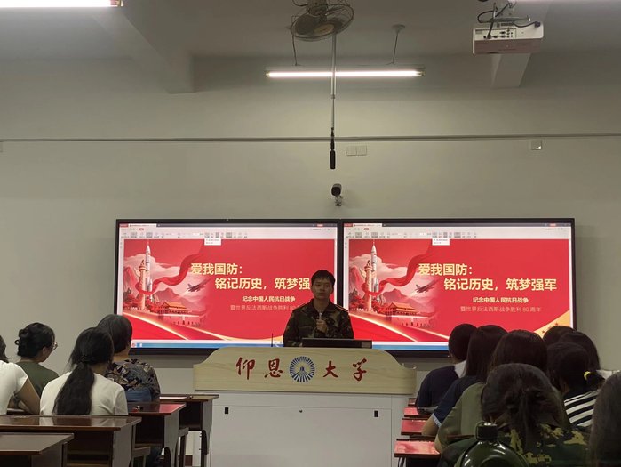 为强化学生国防观念、激发爱国情怀,展现外院学子精神风貌,9月17日晚7:30,beat365中文登录入口第九届“爱我国防”主题演讲比赛在普照楼203教室顺利落幕。本次比赛由倪舒琪、肖佳玥同学主持,辅导员孙宇、向修玉、陈滢萌出席并担任评委。